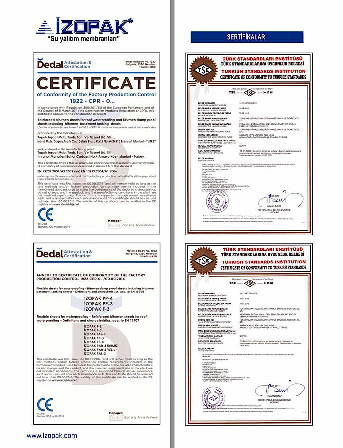 İzopak Bitümlü Su Yalıtım Membranları / Türkçe Katalog