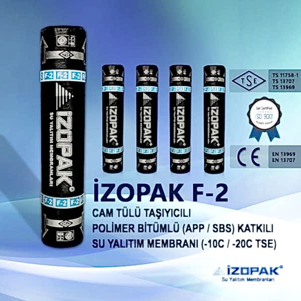 F-2 bitümlü su yalıtım membranları fibrocam tel takviyeli camtülü taşıyıcılı, APP (Atactic Polypropylene) katkılı,her iki yüzü polietilen film kaplamalı olup taşıyıcının bitüm asfalt ile doyurulması sonucu elde edilir. F-2 Fibrocamlı su yalıtım membranı genel olarak çatılarda, pergule ve su yalıtım izolasyonu gerektiren yalıtım noktalarında kullanır.